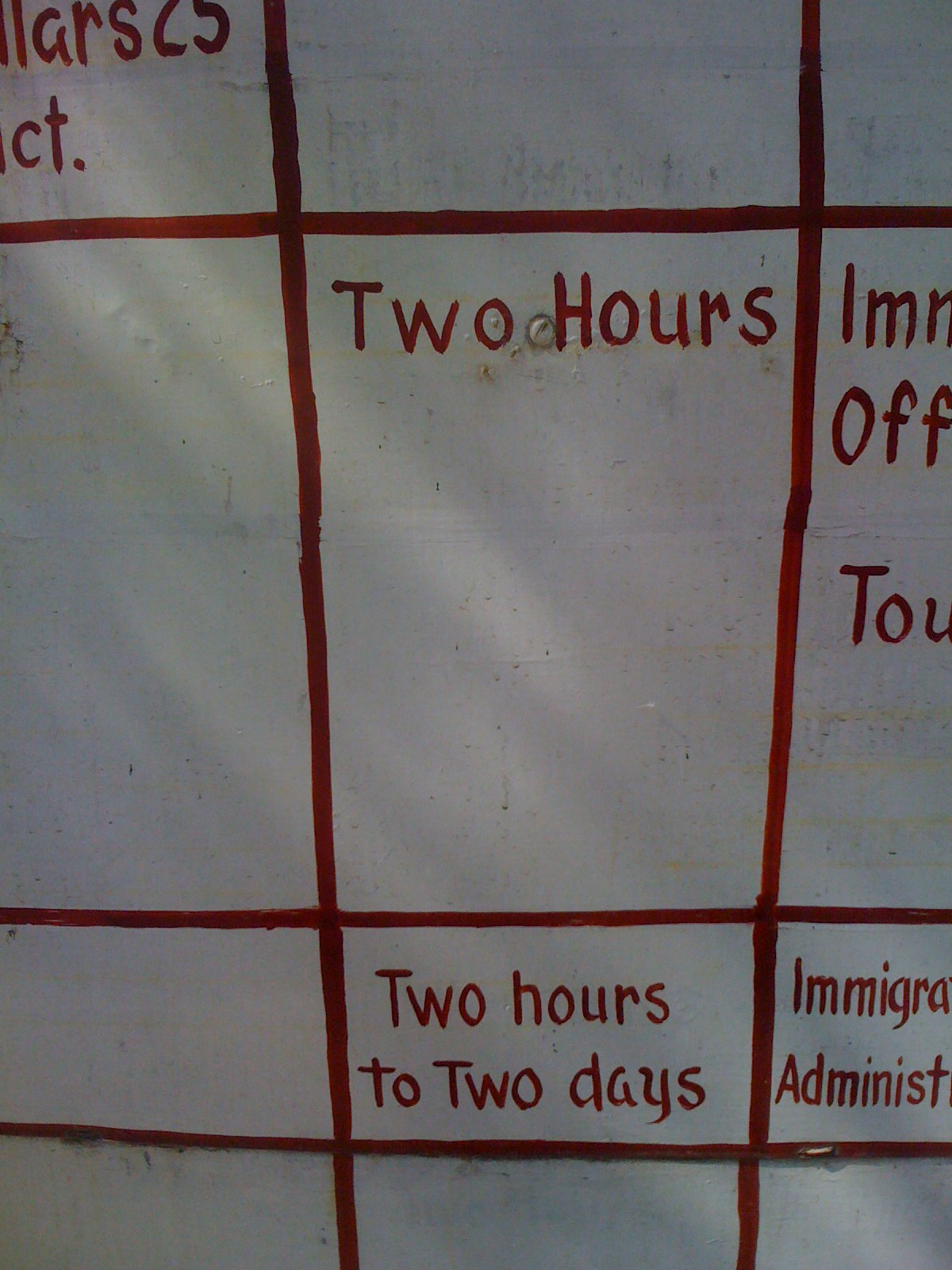 En af konsekvenserne af denne forsinkelse er at vores nuværende visa udløb forleden og at vi derfor skulle have dem forlænget. Prisen for forlængelsen er 2 USD pr dag – og minimumsperioden er 2 uger. Så det kan hurtigt løbe op.