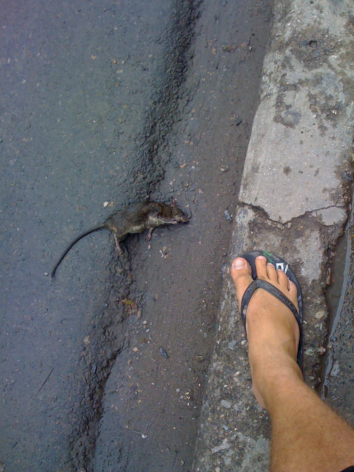 Man skal træde varsomt fortiden. Der er døde rotter overalt – og det er ikke altid at skaderne og hundene når at få dem spist. Tror de drukner i de ufattelige mængder vand der vælter ned i perioder. Det er lige før der er flere rotter her end i København K.