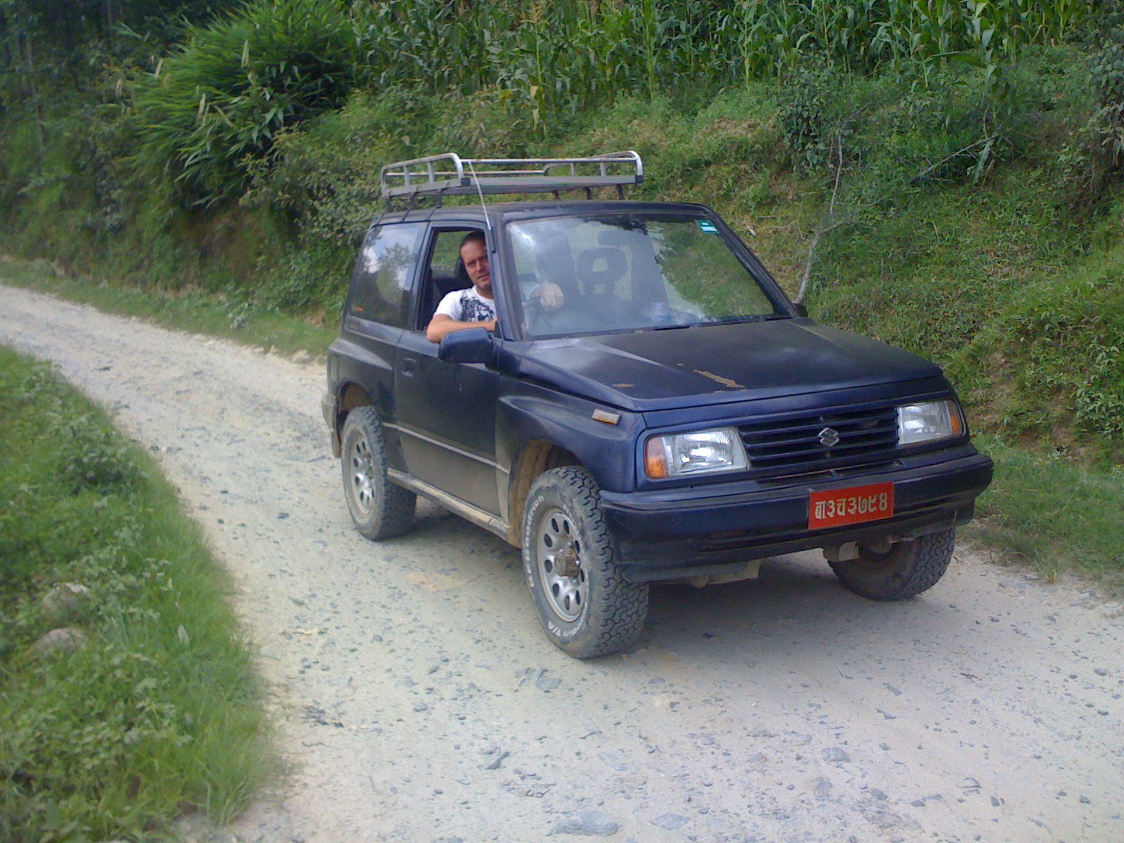 Og 1-2-3 – mindre end et sekund senere ender bagdelene af mit lorteskrummel af bil nede i rismarken til venstre for mig. Den står helt skævt – lige så skævt som smilene på de nepalesiske bønder, der nu begynder at samle sig omkring os. Det er med garanti ikke hver dag, de ser to hvide tåber køre galt in the middle of nowhere. Alle er heldigvis søde og hjælper til med at skubbe bilen forfra, så jeg kan bakke bagenden op på stien igen.