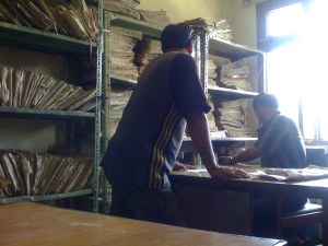 Der eksisterer ikke en computer i registreringskontoret. Alle dokumenter på alle biler i Nepal ligger i stabler og stakke og samler støv. Skal du – som i vores tilfælde – finde det oprindelige dokument fra 1989 er det bare med at komme i gang med at bladre – og så håbe på at den bog man skal bladre i, ligger der hvor den skal.