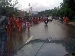 Små 3 timer senere sad vi godt begravet i traffic jam uden udsigt til at kunne nærme os Boudha overhovedet. Vi havde glemt at det var Teej festival og at alle kvinder i hele Kathmandu skulle til Pashupati og danse i deres røde Sarier. Trafikken var derfor brudt sammen.