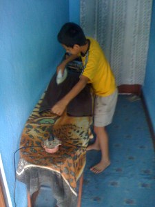 Næste morgen var jeg oppe ved 6 tiden og satte mig først ind og hjalp ungerne med lektierne og skred senere over hos de store og talte lidt voksen-snak med dem. Noget af det overgearede fra dagen, før var erstattet af en teeanager trang til at tale seriøst – dvs om livet, musik, drømme osv. Alt imens der blev strøget tøj, vasket, lavet mad osv.