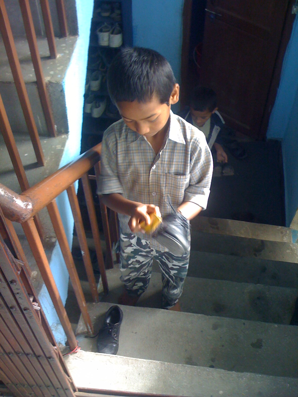 På vejen over for er der endnu et hus – det er en del mindre og er rammerne for 5 af de ældste kids. Alle drenge der er hentet fra gaden – dvs. nogle af dem, som de fleste etablerede organisationer har sværest ved at hjælpe. De kids man finder uden for Thamel, med limposer i hånden – poser de først slipper, når de falder bevidstløse om i bunker og deres fingermuskler slipper grebet om dem.
