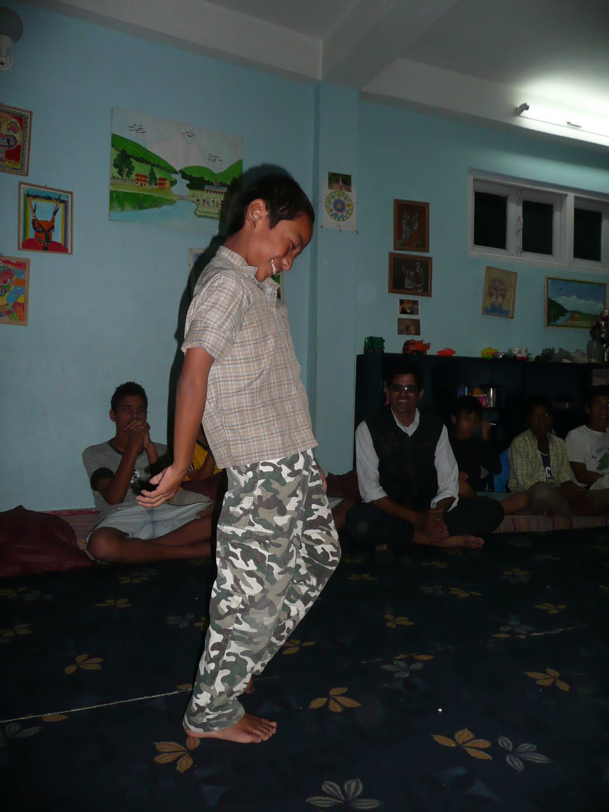 Efter maden rykkede hele holdet ned i lege/lektierummet, hvor den stod på dans og den fantastisk nepalesiske fællessang backet up af det mest fantastiske tromme groove. Alle lærer åbenbart at håndtere dette fantastiske – men svære – instrument.