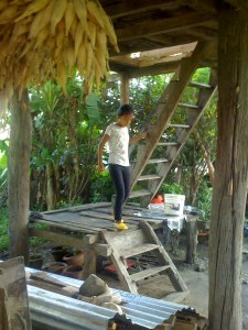 Vores batterier er derfor ladt 100 % op da vi vågnerden efterfølgende morgen. Jeg omkring kl. 6 – Annette et par timer senere. Jeg bruger morgentimerne til at sidde og lege med ungerne, tjekke nabolaget ud, ikke mindst familiens kommende palæ der er ved at blive bygget et parhundrede meter inde i paradis.