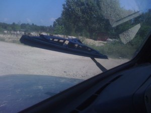 Turen startede i og for sig strygende – vejen var perfekt de første 500-600 km. Men herefter bliver kvaliteten so, so. Ydermere røg fjederen over forreste højre forhjul sig en tur efter femte time og ophænget til lydpotten forsvandt umiddelbart efter. Bilen kom derfor relativt hurtigt til at lyde som en mellemting mellem et lokomotiv og rumraket under opstart.
