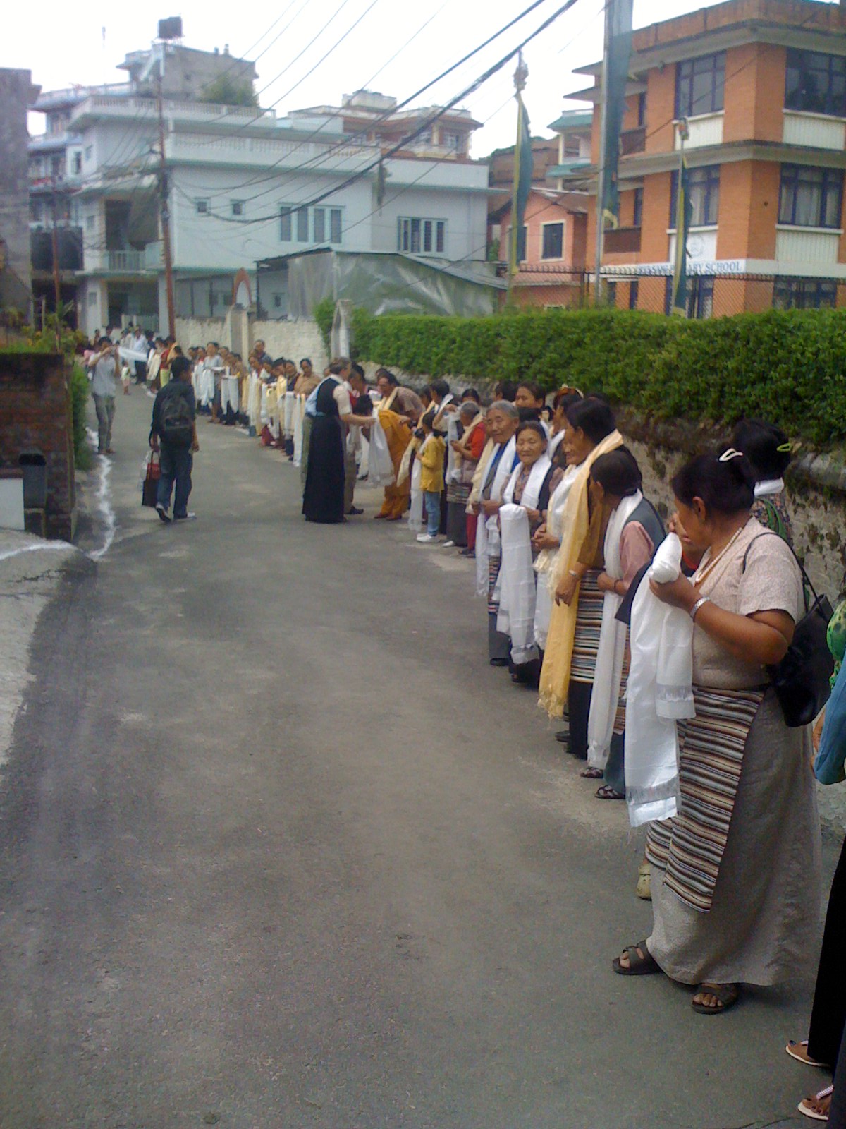 En af de helt store forretningsområder i Nepal er charity (grufuldt ulækkert – men det er en historie jeg må skrive på et andet tidspunkt). Man hører kun om de store projekter. Men Kathmandu (og resten af landet) er en stor smeltedigel af små projekyter, der lever ubemærket og uden anden hjælp end den, der kommer fra de dedikerede involverede. Som eksempelvis Tibet Charity’s center i flygtningelejren i Jorpathi, hvor konferencen også gjorde hold. Lakha Rinpochen er religiøst overhoved for flere end hundrede tusinde Tibetanere i østtibet – en egen hvor flere af beboerne i centret kommer fra. Så der er linet den helt store velkomst op hvergang han og Pia besøger lejren.