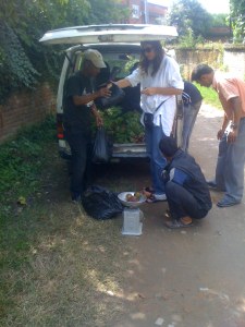 Desværre nåede Kasper ikke at købe ind fra vores lokale grøntpushere fra Gamcha. Jeg havde eller afskrevet dem – de havde brændt os af i en måned. Men det viste sig at den ene af de tre fyre – Gonga’s mand – der kører rundt med de økologiske afgrøder døde. Det tog dem en lille måned at komme over. Så midt i gensynsglæden over at se vores mobile grønthandlere igen, kom der sgu en lill klump i halsen.