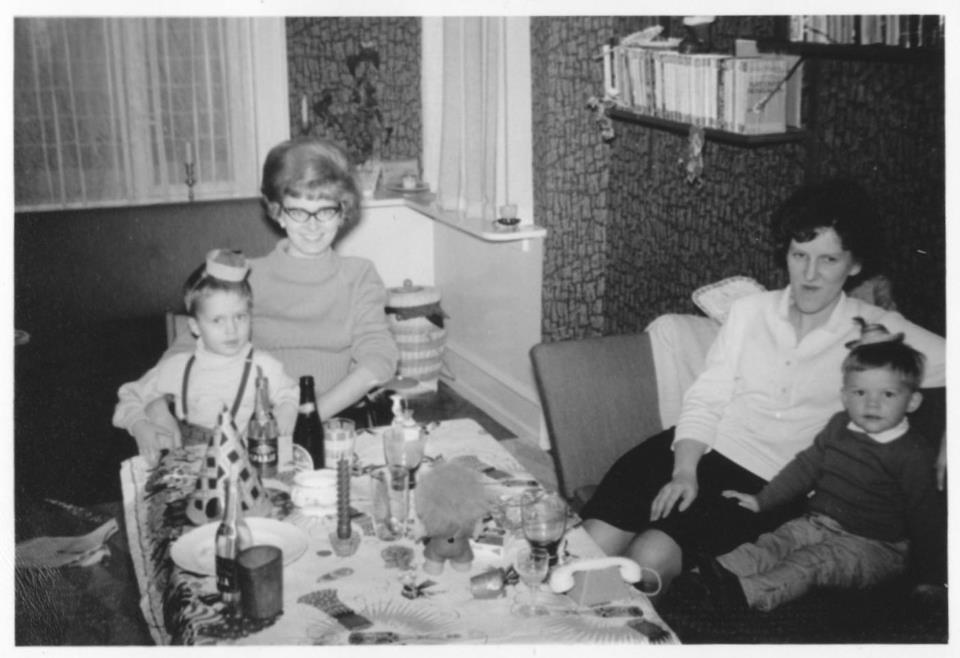 Nytaars Aften 1964 med Kirsten (mor), Inge & Ynk (Joergen) – aner ikke hvor, men det maa vaere et sted paa Vesterbro – Krusaagade / Sdr. Boulevard.