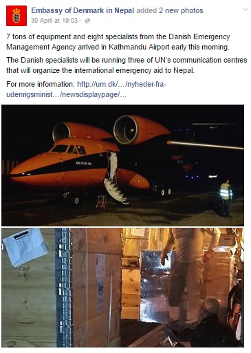 ”FN’s nødhjælpskoordinator har i dag bedt Danmark om at lede etableringen og driften af tre kommunikationscentre, der vil udgøre kernen i koordinationen af nødhjælpsindsatsen i Nepal. Vi har straks bevilget godt to millioner kroner til Beredskabsstyrelsen, der sender otte eksperter, IT-og kommunikationsudstyr inden for det næste døgn. Vi følger situationen meget nøje, og har i dag haft et krisemøde med danske nødhjælpsorganisationer og Beredskabsstyrelsen om behovene her og nu – og i kommende dage. Det kan ikke udelukkes, at der bliver brug for mere dansk hjælp til Nepal, hvor antallet af omkomne og sårede stiger time for time. Vi er løbende i dialog med både FN og EU.”