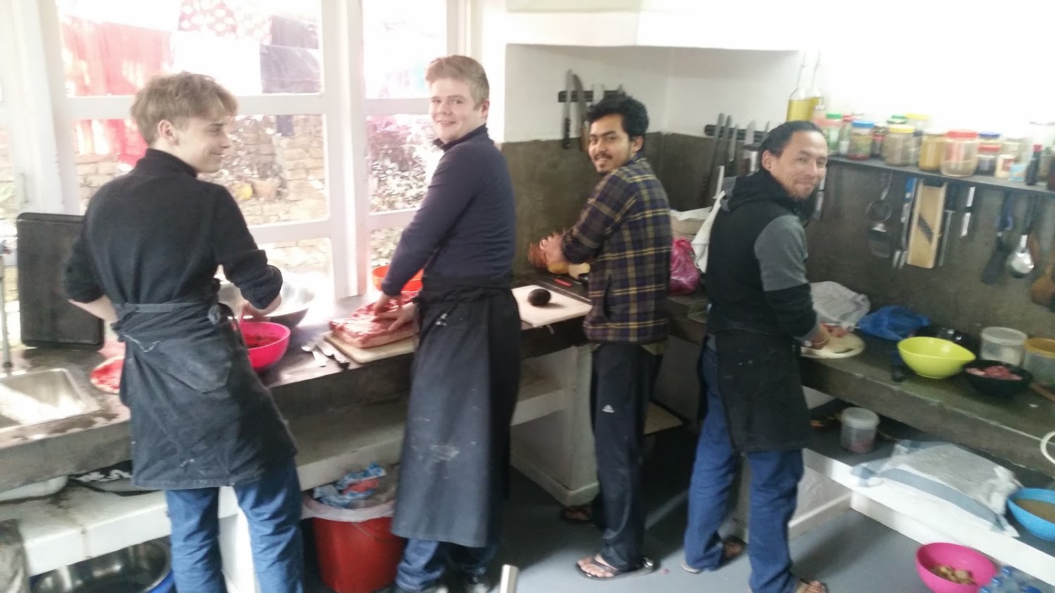 Da vi efter ufatteligt mange timers køretur langt om længe var tilbage i vores oase i Lazimpat, fik vi besøg af Marie & Rikke Bronx der er en sprit ny veninde jeg fik af Morten Asbjørn da han for nogle måneder siden connectede os fordi han tog Rikke med til Kathmandu. Da insisterede jeg på at de skulle tage til Tiger Tops Elephant Camp, hvor vores gamle Kathmandu veninde Marie arbejder – eller arbejdede! Det gør hun nemlig ikke længere. Hun er nemlig netop startet med et nyt trekking project, der bl. a. involvere en nytænkning på madfronten – og her kommer Rikke ind i billedet. Ikke alene er hun DJ, hun er også kok og alt-muligt-andet-mad med en masse spændende erfaring fra ufattelig mange steder. Og det udnytter Marie nu skammeligt ved at tilknytte hende som food DJ til trekking-projektet.